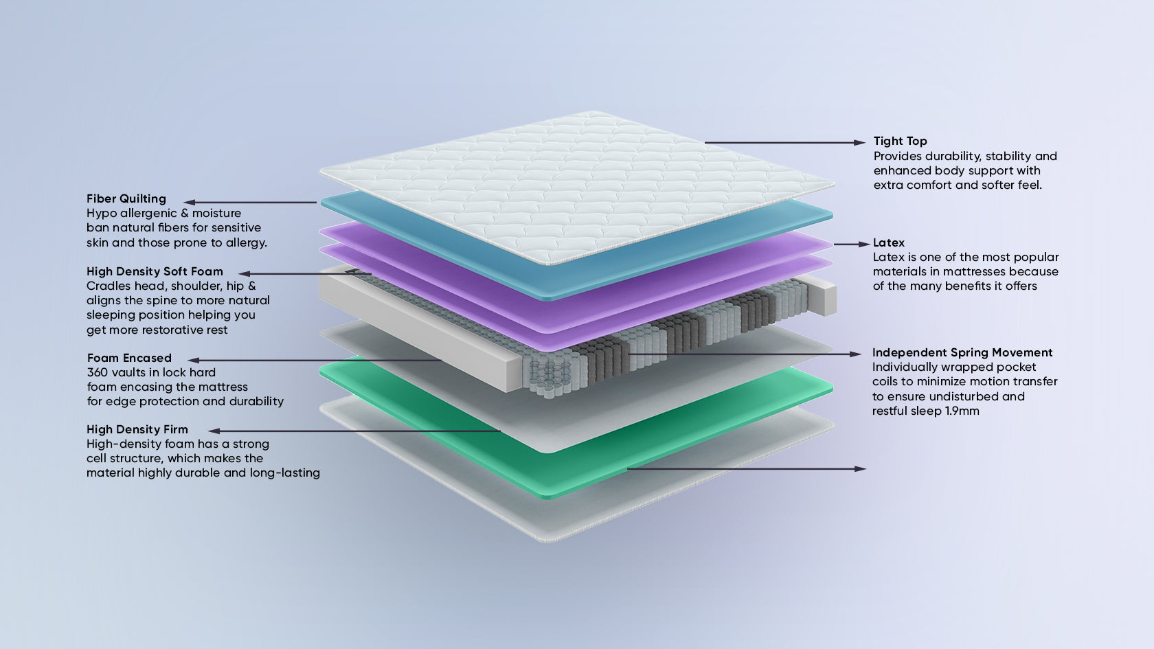 Premium Latex: Blends comfort and support with natural responsiveness.